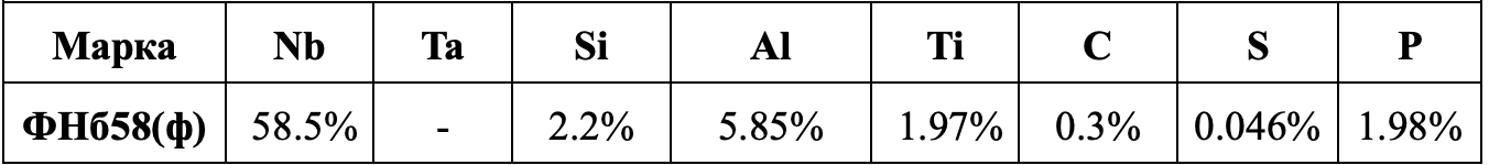 Феррониобий ФНб58(ф) — это сплав железа (Fe) и ниобия (Nb) с содержанием ~58% ниобия, где маркировка (ф) указывает на фракционированный состав (определенный размер частиц). Этот сплав используется для точного легирования сталей и специальных сплавов, обеспечивая улучшенные механические и коррозионные свойства. Основные характеристики ФНб58(ф): 1. Физические свойства:
