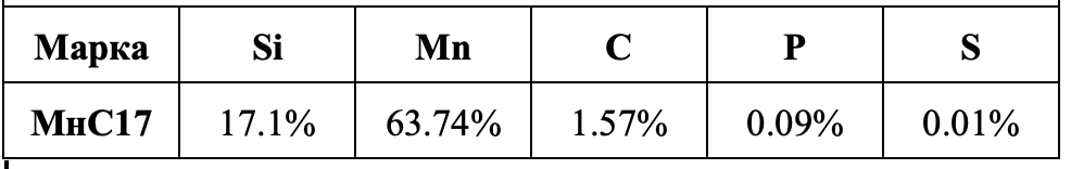 Ферросиликомарганец МнС17 — это комплексный ферросплав, содержащий марганец (Mn) и кремний (Si), используемый в металлургии для раскисления и легирования сталей и чугунов.