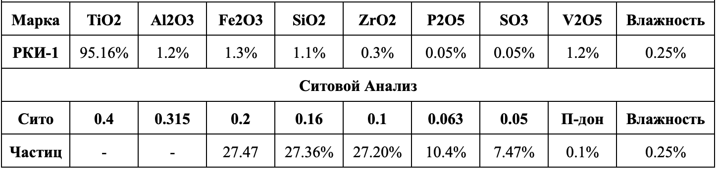Рутил РКИ-1 — это природный диоксид титана (TiO₂) высокой чистоты, используемый преимущественно в производстве сварочных материалов. Марка РКИ-1 относится к категории качественного сырья с регламентированным химическим составом и физическими свойствами. Основные характеристики (ГОСТ 22985-90 или ТУ)