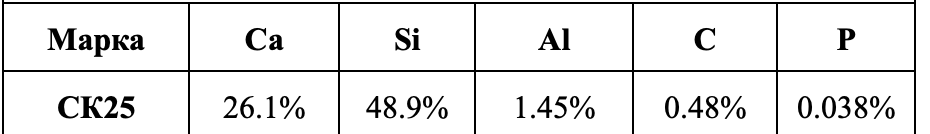 Силикокальций СК25 — это промежуточная марка ферросплава между СК20 и СК30, содержащая 23-27% кальция и 58-63% кремния. Используется для раскисления, десульфурации и модификации металлов в случаях, когда СК20 недостаточно эффективен, а СК30 экономически нецелесообразен. Основные применения В сталеплавильном производстве:
