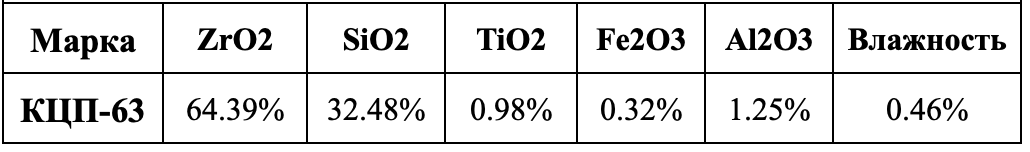 Цирконовый концентрат КЦП-63 — это обогащенное циркониевое сырьё с содержанием ZrO₂ + HfO₂ ≥ 63%, используемое в огнеупорной, керамической и металлургической промышленности. Основной источник получения циркония и гафния. Технические характеристики (ГОСТ 14007-91)